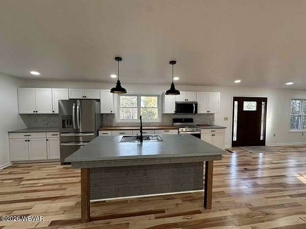 Totally remodeled ranch house on 2.5 country acres. Awesome Great Room with open floor plan. and corner fireplace. Very functional kitchen with appliances. Basement finished with a corner fireplace, large family room as well as a hobby room or toy room. 2 car attached garage and separate storage shed. Private end of road location. Lots of garden or orchard space.