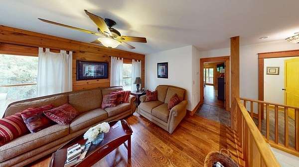 Stunning Private Log Cabin Estate on 11+ Acres with Creek, Detached Shop & Endless Possibilities - Escape to your own private retreat with this breathtaking log cabin estate! Nestled on over 11 acres of open and wooded land, this property offers complete privacy, scenic beauty, and versatile outdoor space. A creek meanders along the back of the property, adding charm and tranquility to your estate. Built in 2009, the main log cabin exudes rustic elegance with two spacious main living areas, perfect for entertaining or relaxing with family. The main level includes a living room, dining area, and a gourmet-style kitchen that opens to a breakfast area, which flows directly onto a large 34 ft covered back porch. Enjoy morning coffee or evening sunsets while taking in the view of the open yard surrounded by majestic, mature trees. The owner's suite on the main level is a private sanctuary, featuring a full bath with a large walk-in shower, double vanity, private water closet, and generous linen closet. The lower level is perfect for extended family or guests, offering two additional bedrooms, a fully equipped kitchen, dining area, laundry room, and ample storage space. It's an ideal setup for in-law suite living, rental potential, or a private guest retreat. Outdoor amenities are equally impressive. The property features a detached shop with power, a dream for any hobbyist, woodworker, or "man cave" enthusiast. With plenty of land for horses, a working farm, gardening, or simply exploring, this estate provides endless possibilities for enjoying the outdoors and staying active. Whether you're walking the trails, relaxing by the creek, or simply enjoying the peace and quiet, this property allows you to get off the grid while still enjoying modern comforts. Truly a rare find, this log cabin estate combines rustic charm, outdoor living, big beautiful SHOP, and privacy in one stunning package. Perfect for anyone seeking privacy, land, and room to live freely! Endless possibilities await--bring your horses, start a working farm, or grow your dream garden. NO HOAs...enjoy your Estate! Well water!