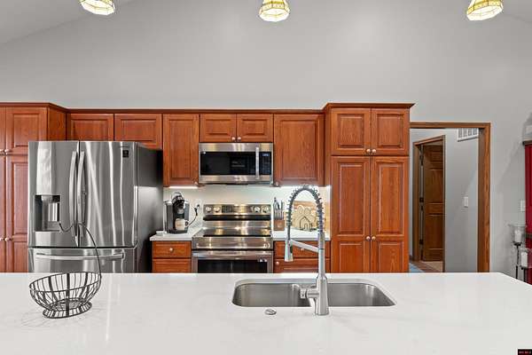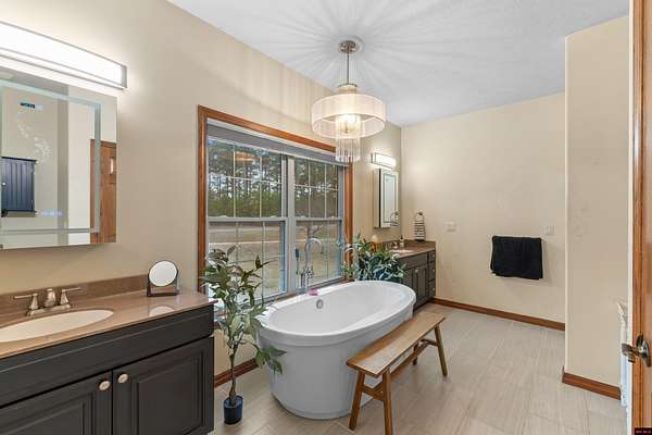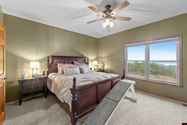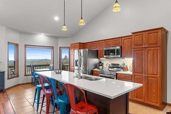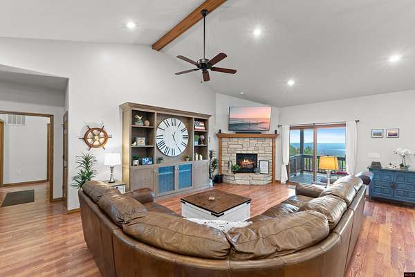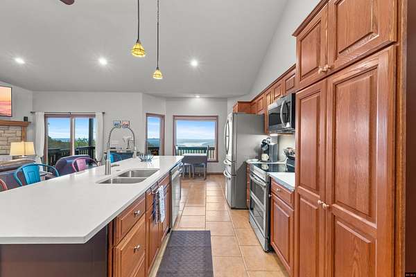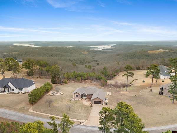 LAKE VIEWS & STUNNING SUNRISES. Nestled on 1.6 acres m/l in The Summit--known for large custom homes, underground utilities & NEXT high-speed internet--this all-brick 2006 home is just 5 minutes from Tracy Marina on Lake Norfork. Offering 5 bedrooms, 3 full baths & a finished walkout basement, there's room for guests or multi-generational living. Updates include quartz island, remodeled primary bath with freestanding tub, fresh paint, lighting & landscaping. Major improvements: roof (2019), new appliances (2023) including heat pump & A/C, in-line hot water heater (2025) & a backup generator. Two gas fireplaces, built-in safe room & flexible lower level with exterior access. Home inspection complete + 14-month warranty offered. All appliances convey. Enjoy lake living every day.