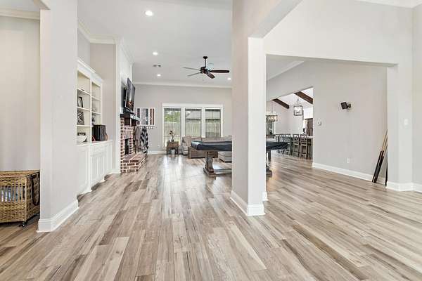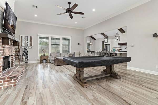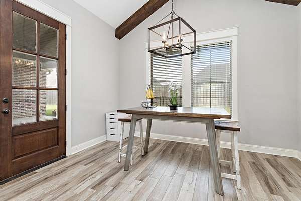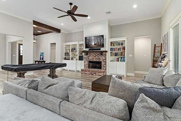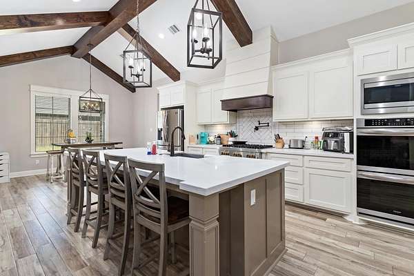 Est $2,829/moWelcome to 206 Tara Lane in the highly sought-after Woosley Palms neighborhood of Lumberton. This stunning home boasts a chef’s kitchen with custom cabinetry, vaulted ceilings with wood beams, quartz countertops, large island, gas stove with pot filler, and double ovens. The open living room features built-ins and a cozy fireplace. Retreat to the luxurious primary suite with dual vanities, a garden tub, walk-in shower with dual heads, and a dream closet with custom storage. Three guest bedrooms include a Jack-and-Jill bath in a smart split floorplan. Better than new, upgrades include blinds, gutters, and gas logs. Don’t miss this beauty—schedule your showing!