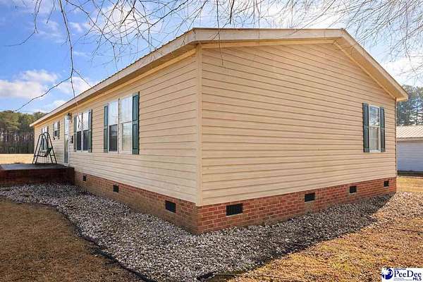 This 2000 Horton double wide offers 3 bedrooms, 2 baths, and 1,799 square feet of living space situated on an expansive 3 acres. The home has been detitled and is priced below recent appraisal, offering an excellent opportunity for buyers seeking space and instant equity. Being sold as-is, offers great potential with a spacious floor plan and peaceful setting. Features include brick underpinning, cement front and rear porches, city water along with a working original well for additional use, a fenced-in area in the backyard, and a large 25' x 25' metal shop with electricity. Updated HVAC system installed in 2023. Conveniently located less than 10 miles from Florence and Lake City, providing easy access to restaurants, shopping, medical facilities, and everyday conveniences. Close to Hwy 52 for easy travel throughout the Pee Dee area while enjoying country living.