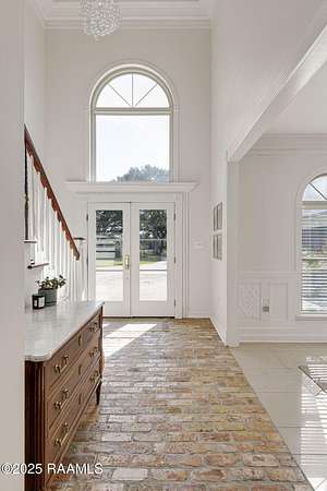 This impressive 2-acre property offers over 4,000 sq ft of beautifully designed living space perfect for entertaining, hosting holidays, and creating lifelong family memories. Just minutes from both I-10 and I-49, the location blends convenience with the privacy of an estate-style setting.Step into the grand foyer, where soaring ceilings set an elegant tone from the moment you enter. A formal dining room sits just off the foyer ideal for holiday gatherings and dinner parties. The spacious living room is lined with windows and two sets of French doors that open to the covered patio, filling the room with natural light. A double-sided fireplace connects the living area to a cozy sitting space off the kitchen, adding warmth and ambiance throughout.The chef's kitchen is a true highlight, offering a 5-burner gas cooktop, slab granite countertops, an abundance of cabinetry, a large pantry, breakfast area, and an inviting sitting area. A convenient wet bar between the kitchen and living room makes hosting guests effortless.Let's talk about the 5 bedrooms and 4.5 baths. Downstairs, the primary ensuite offers a true retreat--complete with private patio access, a cozy double-sided fireplace overlooking the large tub, a separate shower, dual walk-in closets, and a custom double vanity. An additional bedroom and full bathroom on the main level provide convenience for guests or multigenerational living.Upstairs, you'll find three spacious bedrooms, two full bathrooms, and a bonus room for extra storage. Additional features include freshly painted interior and exterior, New front door, renovated bathrooms, new brick flooring in the foyer, large laundry room, plentiful storage closets throughout, and expansive outdoor space ready for relaxation or play.
