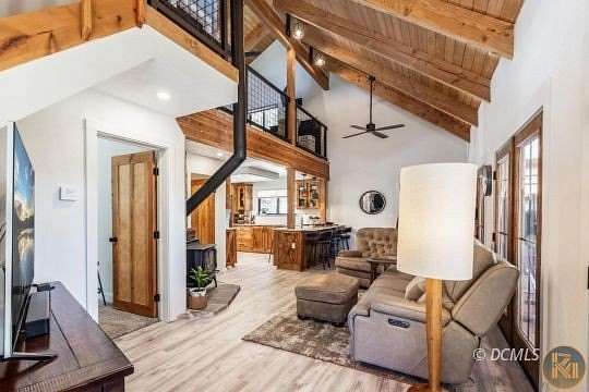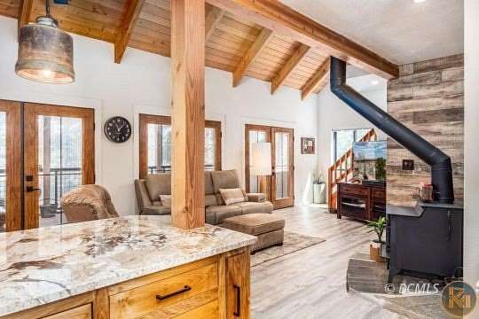 Tucked away on three combined lots totaling almost 2.5 acres, this beautifully modern cabin offers every convenience wrapped in a peaceful mountain setting. Bright, open, and thoughtfully designed, it's the perfect blend of style and comfort. One of the standout features is the stunning sunroom- a light-filled space ideal for morning coffee, cozy evenings, or simply soaking in the serene surroundings year-round. The new pull through 40x50 garage is equally impressive, featuring 100,000 BTU heaters, a private bathroom, a dedicated workshop area, and a spacious loft for storage, studio space, or more. Whether you're storing your toys, working on projects, or dreaming up your next adventure, this garage is ready! Since the photos were taken, a blacktop driveway and a retaining wall have been added, enhancing both functionality and curb appeal. For buyers looking to expand, the seller has thoughtfully had plans designed for an 800 sq ft addition - available for review if you're ready to take this already incredible property to the next level. Don't miss the chance to own a truly move-in ready modern mountain retreat with room to grow!