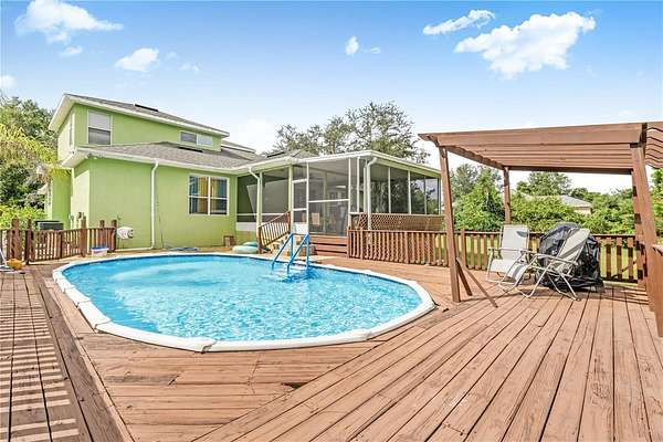 Step inside to a well-appointed layout that balances open-concept living with cozy, defined spaces. The heart of the home flows seamlessly into a large screened-in patio--ideal for year-round entertaining--and overlooks an above-ground pool surrounded by nature and tranquility.