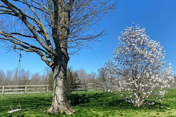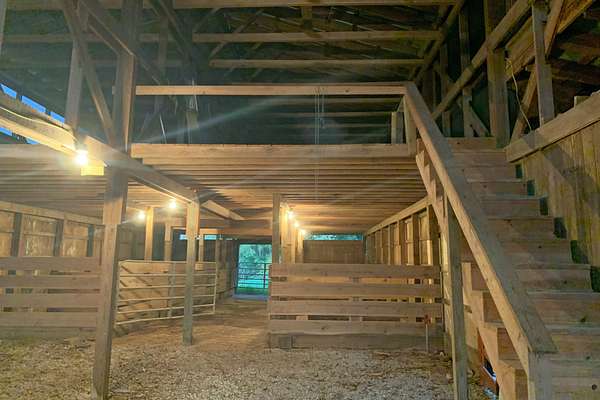 Country living with character! Historic farmhouse- Horse Farm- Vacation Rental. The opportunities abound. One-of-a-kind property that includes a gourmet kitchen, dreamy screen porch, soaking tub in master bath, open air side deck, and recently added fire pit area. The home features mini split air units in each room for individual comfort. Chimney in living room was rebuild/rebricked, living room floor recently replaced and crawl space encapsulated. Sunsets await you to enjoy this peaceful country setting. The large, freshly painted barn includes 8 horse stalls, workshop, and ventilated hay loft. A short walk into the woods leads to the winding creek. This beautiful escape is tucked away on 41.5 acres (.25 acres of timber and 10.5 acres tillable or pasture.)