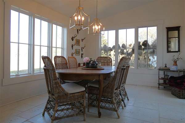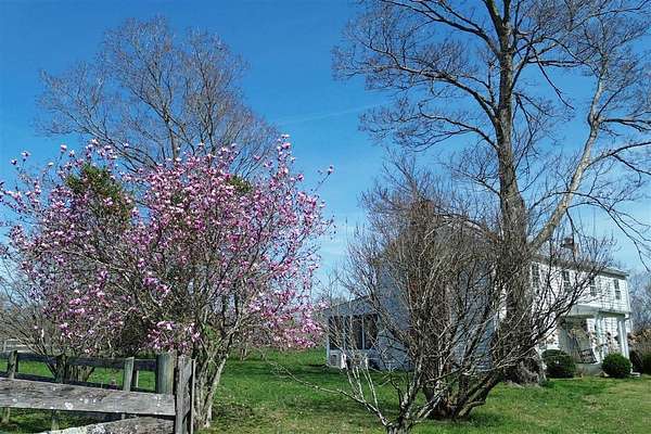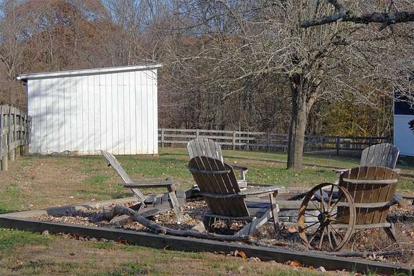 - Barn, Brick Walks, Covered Front Porch, Exterior Lights, Fence, Garden Area, Landscaping, Mature Trees, Outdoor Lighting, Partial, Plank Fence, Screened Porch, Trees, Woven Wire