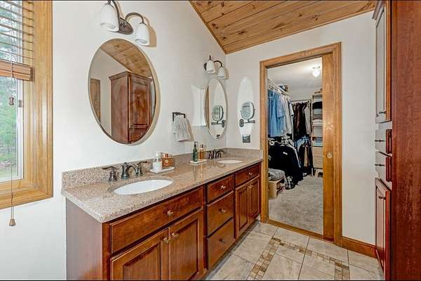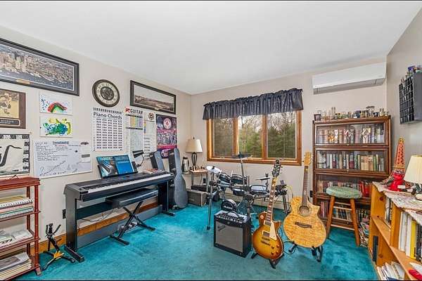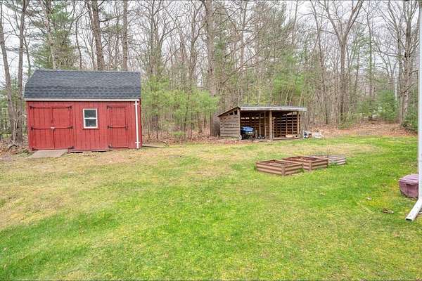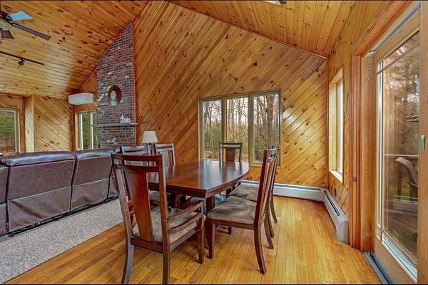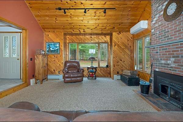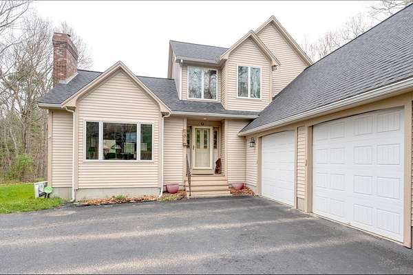 Experience refined, private living at 2060 Maple St, offering 2,200 sq ft of thoughtfully designed space on over 2 secluded acres. This inviting home blends comfort & style, featuring an open-concept layout ideal for both everyday living & entertaining. The well-appointed kitchen showcases granite countertops, a functional peninsula, & seamless flow into the dining & living areas. The living room makes a striking impression with stunning wood cathedral ceilings & abundant natural light. A charming wood-burning stove adds warmth, character & a cozy focal point. The first-floor primary suite provides a peaceful retreat, complete with an ensuite bath featuring radiant heated floors, double vanity, custom walk-in shower & expansive 8x10 walk-in closet. The 2nd floor contains 2 additional bedrooms, an office & a full bath. There is a bonus rec room in the basement & inside the 3-car garage is a staircase to additional unfinished space for in-law/au-pair apartment or additional living space.