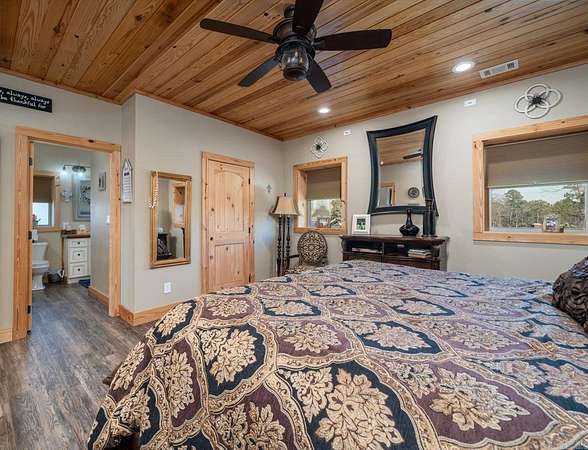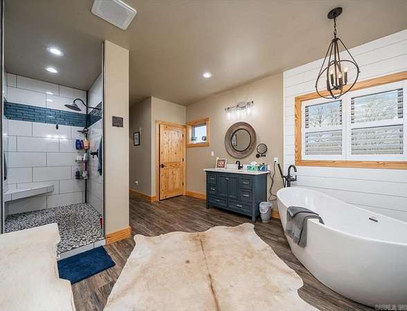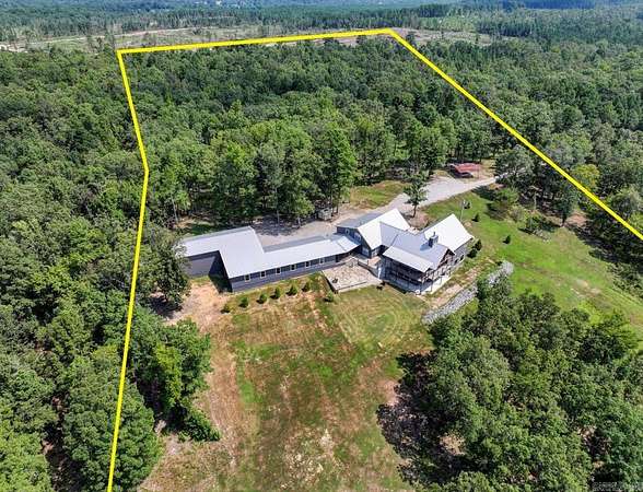 Experience beautiful views and stunning sunsets from the deck or stone patio of this spectacular custom-built home, set on 23+ acres in the Lake Hamilton School District. This impressive 4-bedroom, 4.5-bath home spans approximately 6,079 square feet and is built for both luxury and security with 12" concrete walls, two master suites on the main level, two laundry rooms, and a safe room. Entertain in style with a massive game room, and enjoy the convenience of a 3-car garage, an RV garage totaling approximately 2,761 square feet, and an 894-square-foot heated/cooled workshop. A whole house generator ensures you're always prepared. Located just a 30-minute drive from Oaklawn Racetrack and Lake Ouachita, this property truly has it all. This is the dream home you've been waiting for! Agents - Call Showing service to schedule all showings.