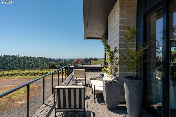 NW Contemporary doesn't begin to describe this unique home that stands apart from the ordinary. The design approach was modern simplicity, authenticity & restraint. A contrast in modern architecture with the backdrop of gently sloping vineyards. The home was perfectly placed to fully capture privacy, calm, peaceful views that are constantly changing from sunrise to sunset. The separate studio building is ready for whatever your needs, art studio, in-home gym, office, tasting room ... with adjoining bathroom the options are endless. The Dundee Hills AVA 8-acre vineyard in planted in Pinot Noir and Chardonnay with an additional 2.5-3 acres plantable. This is a place to welcome family and friends where you can enjoy sipping on the fruits of your labor ... a place to fully enjoy living in the moment. Easy to show and a must see to feel ... make your appointment now!!