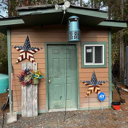 Stunning 1.5 acre fully stocked pond with bass, catfish, crape, brim & red breast. 30 feet deep with three underwater aerators. Catch dinner any time! If you choose, you can live on the backside of the pond while you build because the property includes two 50 AMP RV hookups with water access, plus a laundry shed with washer & dryer onsite.