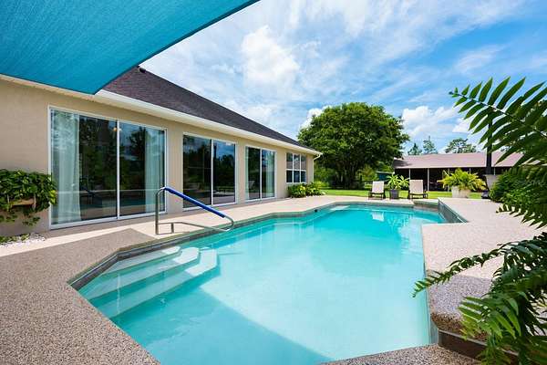 Under contract-accepting backup offers. Seller may consider buyer concessions if made in an offer ***Looking for that rare blend of peace, privacy and an ideal floor plan with plenty of versatile space? WELCOME HOME! This laid-back slice of East Orlando paradise in the heart of Wedgefield delivers 4-bedrooms, 2-full and 1-half baths and is a tranquil retreat where quiet luxury meets idyllic Florida living. Sitting pretty on 2.6 PRIVATE ACRES, this UPDATED single story POOL HOME has all the space you want, all the upgrades you need, and all the charm that makes Wedgefield such a special place to live. Let's start with the big ticket items: NEW A/C2 2025, A BRAND NEW POOL DECK (2025) that's non-skid, heat resistant, and comes with a lifetime warranty! NEW SLIDING GLASS DOORS and four new windows (2025) let the sunshine in while keeping things cool and efficient. You have FRESH EXTERIOR PAINT (2025), SUNSHADES (2022), and the septic was serviced within the last three. This is a home that has been well maintained - and it shows! Inside, you will find a smart 3-WAY SPLIT FLOOR PLAN with high ceilings, crown molding, and just the right layout for both everyday living and entertaining. The generous PRIMARY SUITE becomes your escape from the day with a decorative tray ceiling, a CUSTOM WALK-IN CLOSET, well appointed en-suite bath and private access to the massive Florida Room - which is basically your indoor/outdoor hangout zone, thanks to a wall of sliding glass doors that open up to the pool! The kitchen is at the heart of it all with a huge ISLAND for gathering, casual bar seating, a brick style backsplash, stylized range hood, BUILT-IN/STAINLESS STEEL APPLIANCES, and beautiful lighting. The kitchen flows effortlessly into the formal dining room and is open to a light-filled breakfast nook, so no matter where you land, it just feels like home! Step outside and it gets even better - the open air pool is surrounded by tons of patio space, a COVERED OUTDOOR KITCHEN with BAR SEATING, and plenty of room for lounging, playing or just soaking up the sun. Want more space for your hobbies, toys, or weekend projects? There is an OVERSIZED 3-CAR GARAGE plus a 20x35 DETACHED WORKSHOP (with power!) tucked away behind the home. And yes - your acreage is ZONED A-2, bring your horses or other animals! This is the kind of understated luxury that makes daily life feel effortless. A place where you can spread out, breathe deep, and truly settle in. Your private tour is just a phone call away - so go ahead, fall in love!