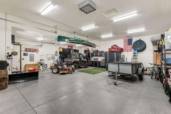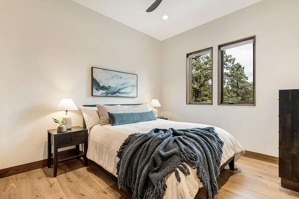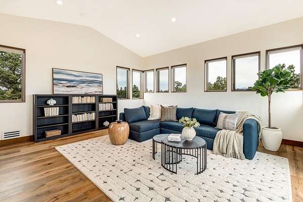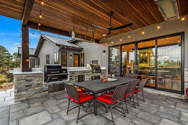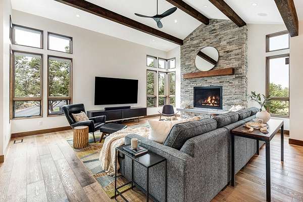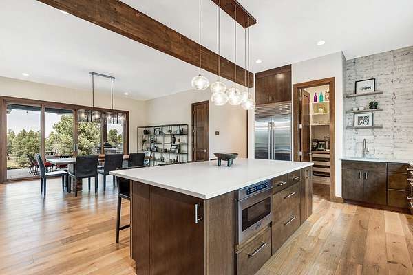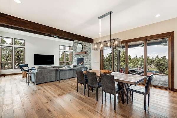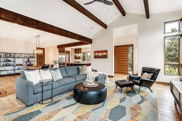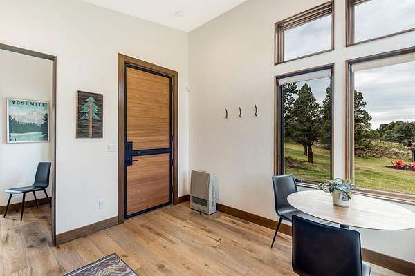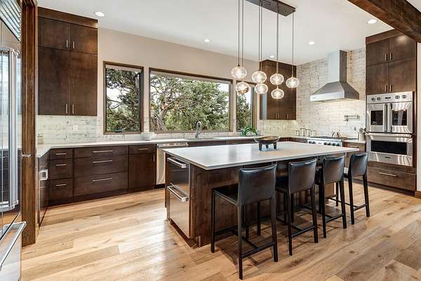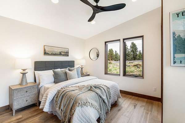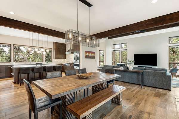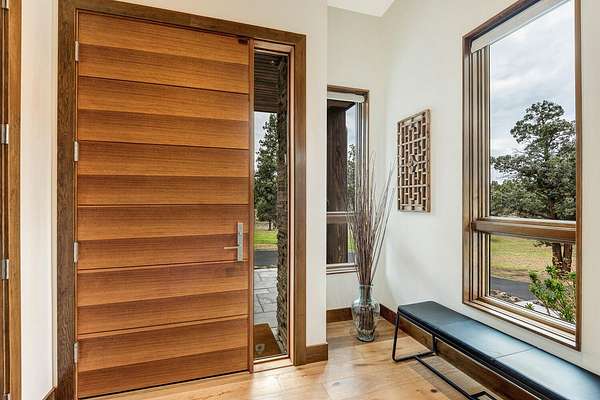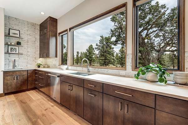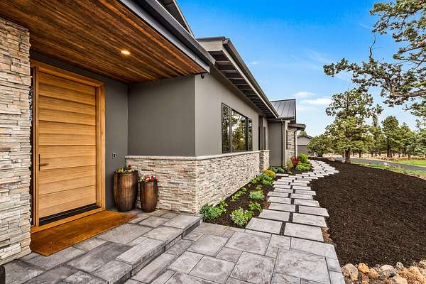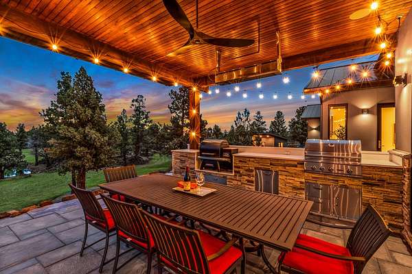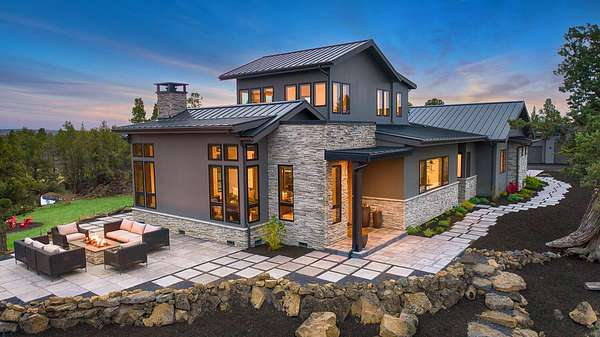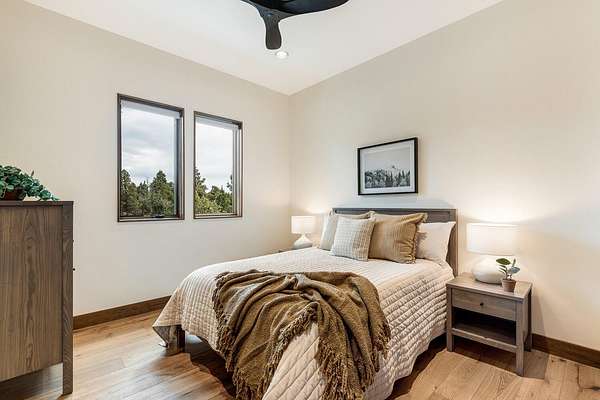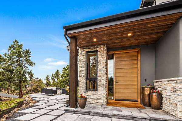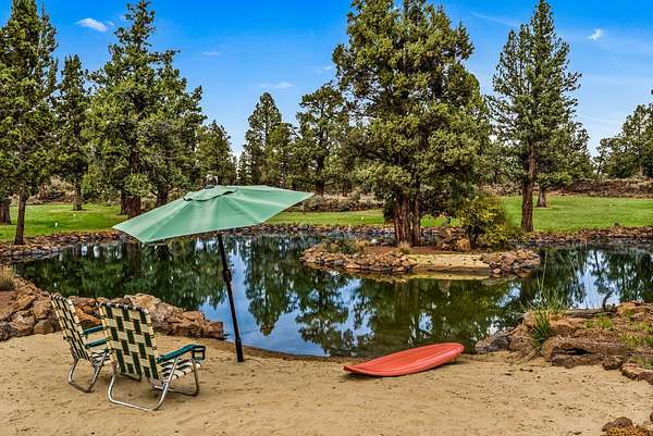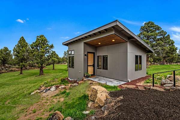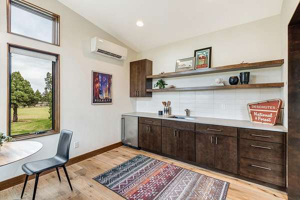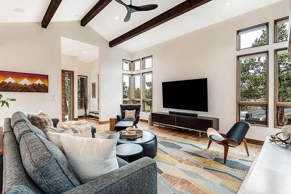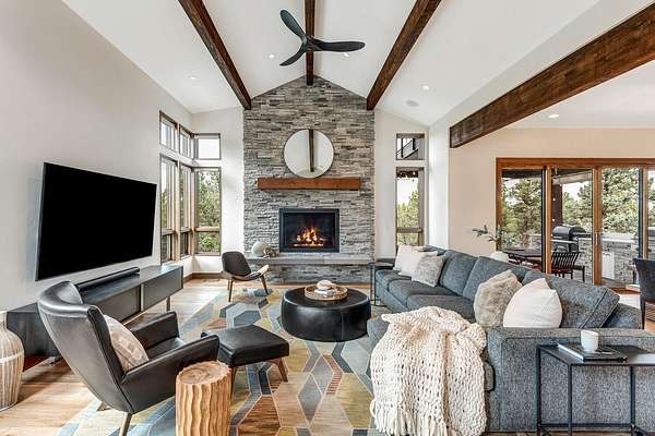 Newer custom construction on a private 9.02-acre homesite with a peaceful, protected setting, this Northwest contemporary stands apart in Bend's acreage market. Soaring ceilings, exposed beams, rich wood finishes, expansive windows, and a floor-to-ceiling stone fireplace create a home that feels both refined and connected to its setting. The showpiece kitchen, featuring Sub-Zero and Viking appliances, opens to the great room and dining area, while the main-level primary suite offers a private retreat with outdoor access to the saltwater hot tub. Upstairs, a flexible bonus space with full bath, mountain views, and rooftop patio creates ideal separation for guests, work, or relaxation. A detached casita, 3-bay shop with owned solar, 2.56 acres of Swalley irrigation, expansive patios, and sweeping territorial views complete this rare offering, all just minutes from Bend amenities.