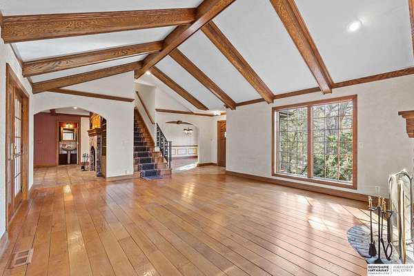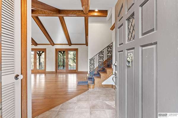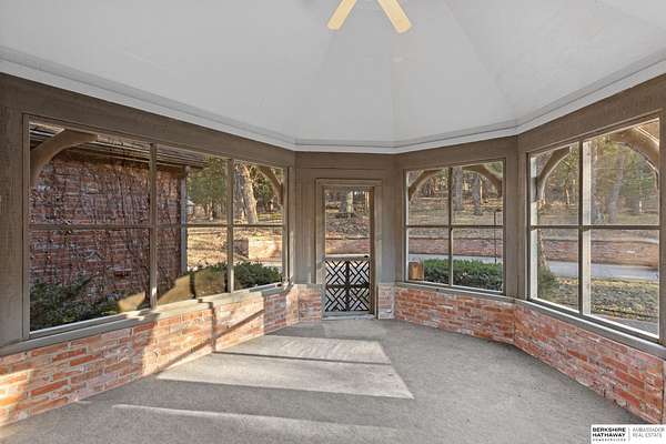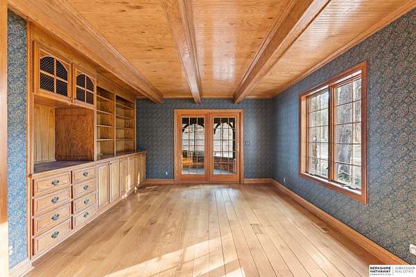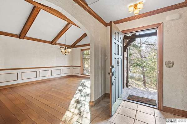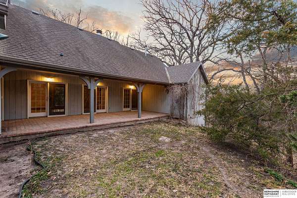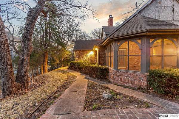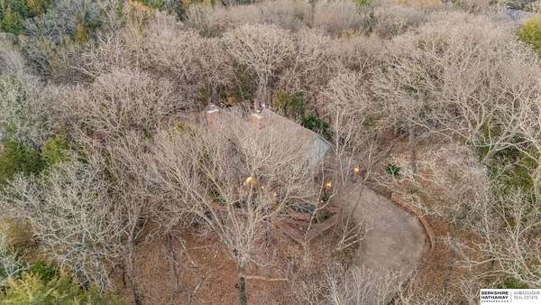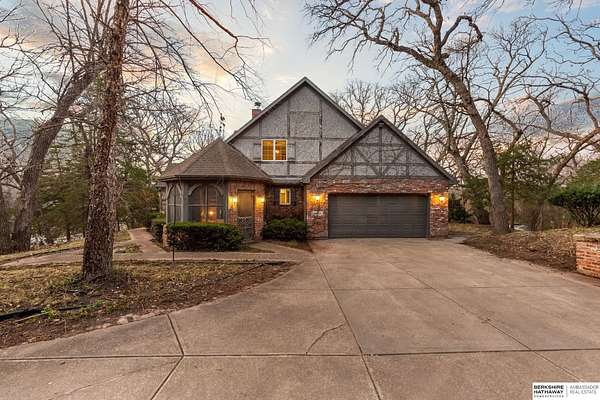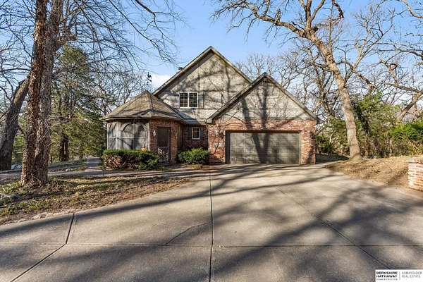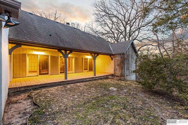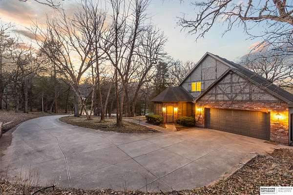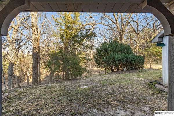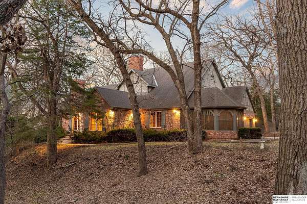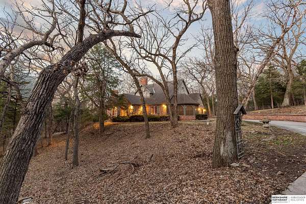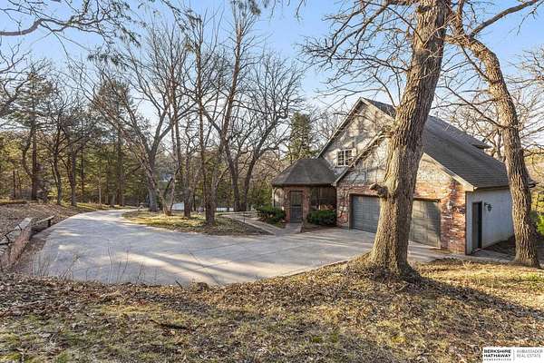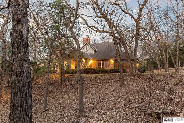 Dani Schram, M: 402-618-3259, dani.schram@bhhsamb.com, https://www.danischram.com - Tucked away on 3.46 wooded acres, this enchanting property feels like something out of a storybook. Surrounded by mature trees and natural beauty, it offers a peaceful retreat in a quaint neighborhood just minutes from Omaha. With an abundance of wildlife right outside your door, a neighborhood fishing pond, and a low mill levy, this is the kind of place where life slows down and simple moments shine.The cottage-style home is full of charm and character, with rich wood floors, beautiful brick accents, and stunning wood-detailed ceilings that create a warm, inviting feel throughout. French doors open to a lovely brick patio-perfect for quiet mornings with coffee or cozy evenings under the trees as deer and birds pass by. Everywhere you look, thoughtful details and timeless touches make this home feel truly special! There's so much more to discover around every corner. You won't want to let this one of a