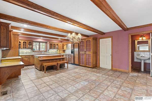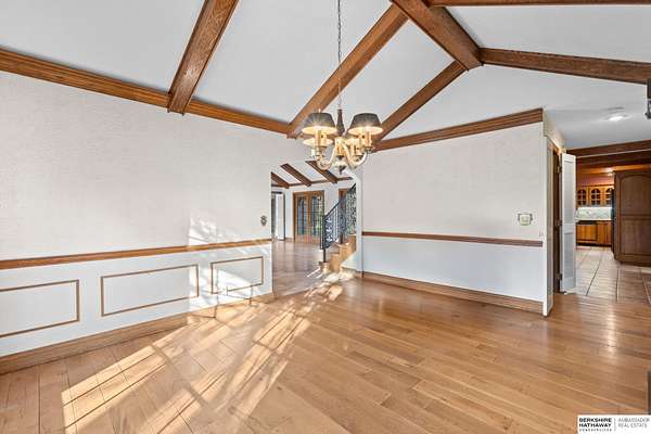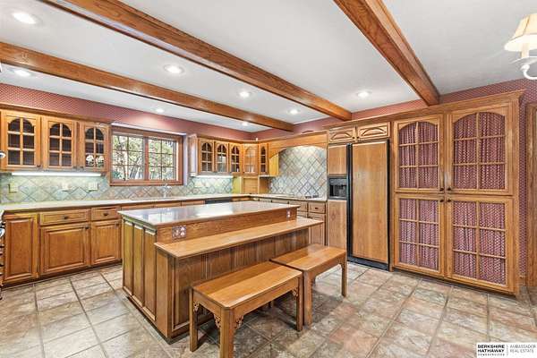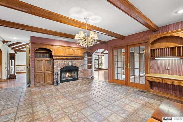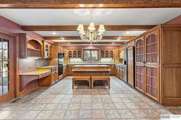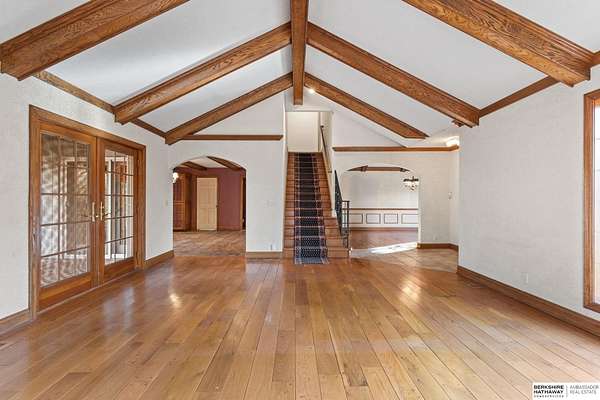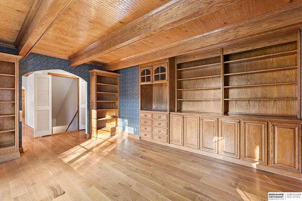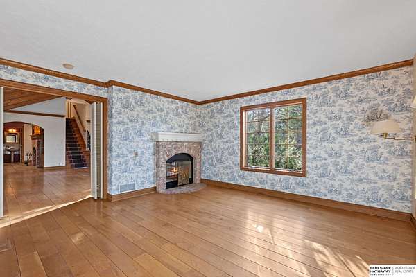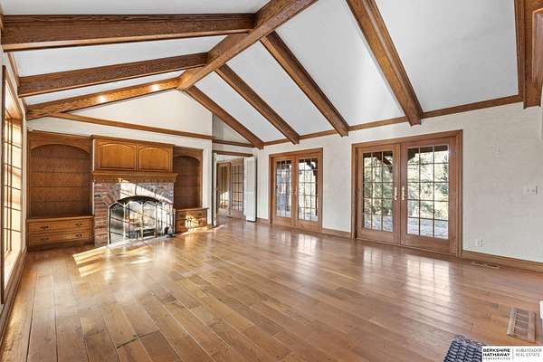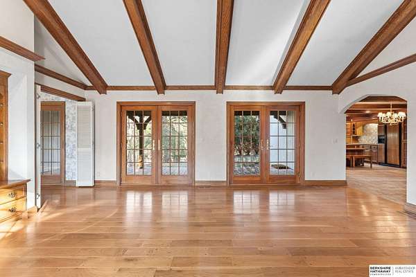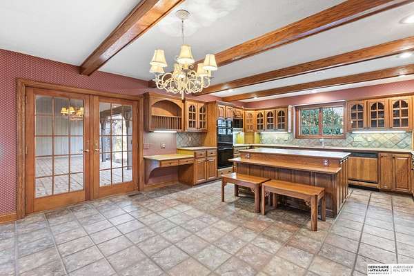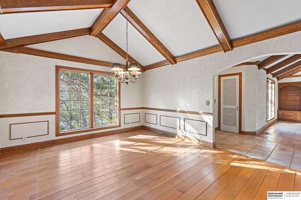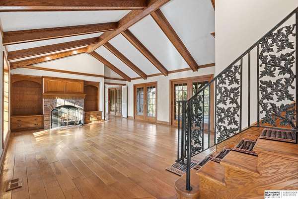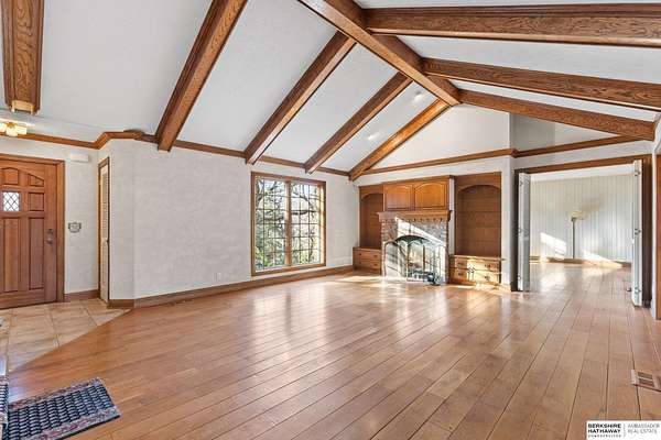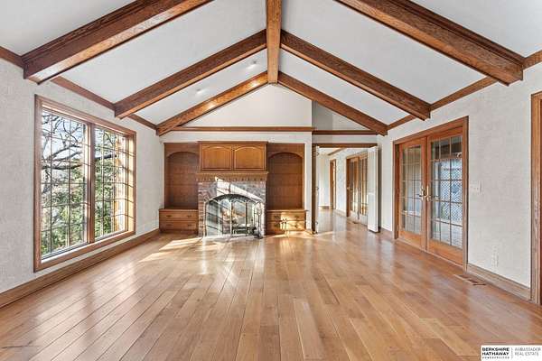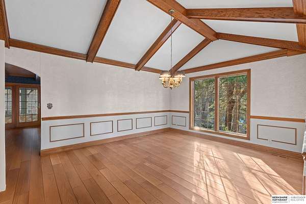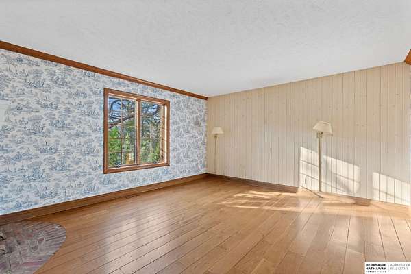 Dani Schram, M: 402-618-3259, dani.schram@bhhsamb.com, https://www.danischram.com - Tucked away on 3.46 wooded acres, this enchanting property feels like something out of a storybook. Surrounded by mature trees and natural beauty, it offers a peaceful retreat in a quaint neighborhood just minutes from Omaha. With an abundance of wildlife right outside your door, a neighborhood fishing pond, and a low mill levy, this is the kind of place where life slows down and simple moments shine.The cottage-style home is full of charm and character, with rich wood floors, beautiful brick accents, and stunning wood-detailed ceilings that create a warm, inviting feel throughout. French doors open to a lovely brick patio-perfect for quiet mornings with coffee or cozy evenings under the trees as deer and birds pass by. Everywhere you look, thoughtful details and timeless touches make this home feel truly special! There's so much more to discover around every corner. You won't want to let this one of a