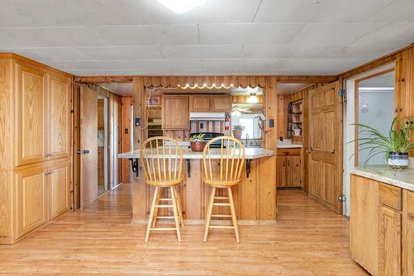 - Formica Counter, Wood Cabinets