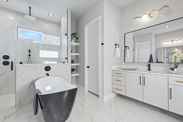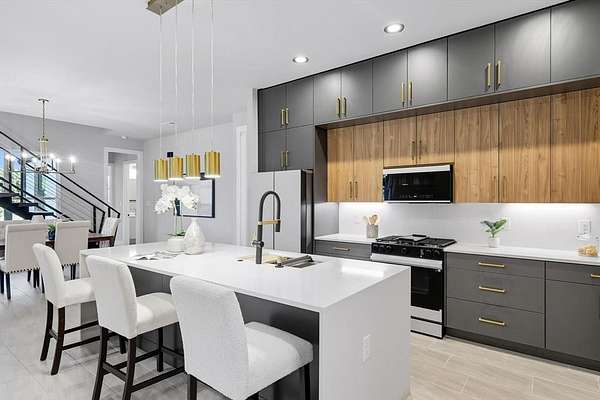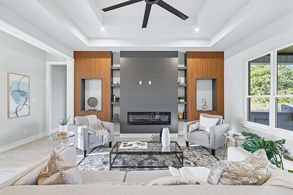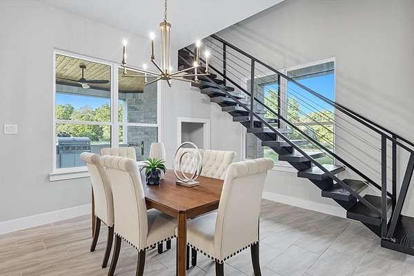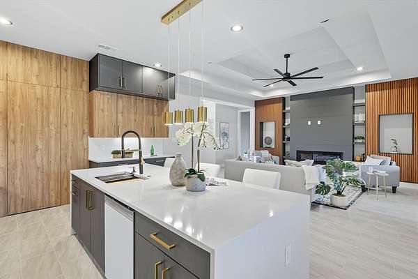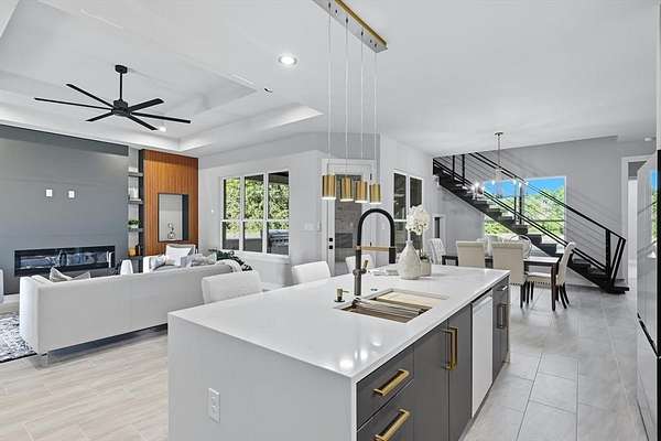 This stunning home offers 5 spacious bedrooms, a dedicated office, and an upstairs game room. The open floor plan features a living area with fireplace, seamlessly connected to a chef's kitchen with custom ceiling-height cabinetry, premium appliances, and a dining space filled with natural light.