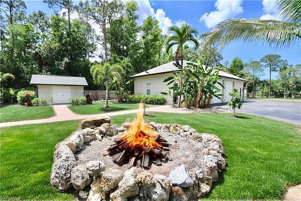 Welcome to this beautifully maintained 2-story home nestled on 2.8 fully cleared and gated acres in the highly desirable, non-gated neighborhood of Logan Woods. Offering privacy, space, and versatility, this unique property features 3 spacious bedrooms, 3.5 bathrooms, and a large bonus room-perfect for a home office, playroom, or guest suite. Enjoy Florida living at its finest with a sparkling salt water pool with color changing led lighting, relaxing spa, and cozy fire pit surrounded by lush Calusia hedging and tropical fruit trees. The home also features outdoor solar led lights, 2 tankless water heathers, ample storage space. The expansive grounds offer a tranquil, secluded atmosphere ideal for entertaining or simply unwinding. A generous 2-car carport and a detached 6 car garage with a spacious office space and half bathroom make this property a dream come true for hobbyists, car enthusiasts, or anyone in need of extra storage or workspace. This rare estate offers the serenity of country-style living with the convenience of being just minutes from fine dining, world-class shopping, and Naples' renowned white-sand beaches. Located less than 15 minutes from Fifth Avenue South and the Waterside Shops, this is a truly rare opportunity to own a multi-use estate in the heart of Naples.