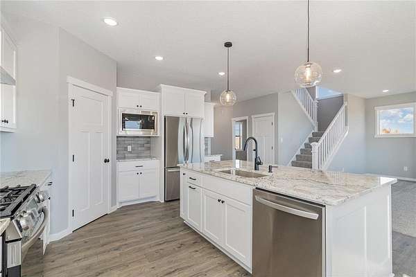 The Rockwood features a gourmet kitchen: huge granite island, tons of custom enameled cabinetry & walk-in pantry, Spacious dining area w/oversized windows. Light & bright great room with fireplace plus office/flex room, powder room & convenient mudroom! Four large bedrooms & laundry up! Owners' bath w/walk-in tile shower, dual vanity & linen. The second floor also includes a large sized laundry room! This home also consists of a large 4 stall garage! Basement is unfinished, with potential for a 5th bedroom, 4th bathroom, and a large sized family room! Other homesites/models to view with customizable plans available, can go from scratch as well! Want a larger garage or additional space? No problem, we are a custom builder!