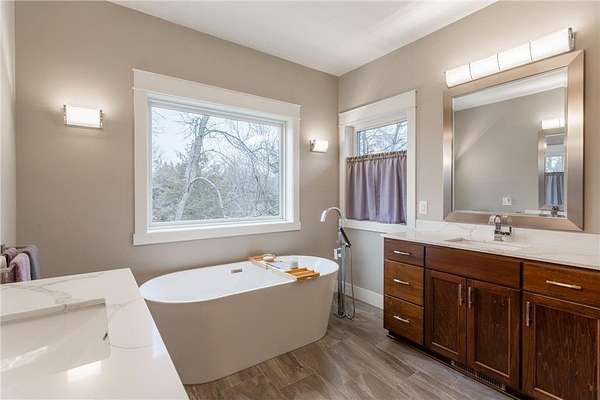 The 7.58 acre setting offers a private sanctuary with winding trails and abundant wildlife, where deer, fox, rabbits, squirrels, and a variety of birds regularly visit, delivering a true Northwoods-style experience just minutes from Hastings.