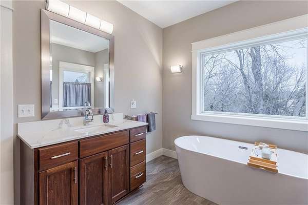 Inside the home, you’ll find 3 bedrooms and 3 bathrooms within a beautifully designed open-concept layout highlighted by soaring 11-foot ceilings and rich hardwood flooring throughout the main level. The chef’s kitchen features stainless steel appliances, abundant cabinetry, and a spacious walk-in pantry, all flowing seamlessly into the main living and dining areas—perfect for gatherings both large and small. Everyday living is made effortless with main-level laundry, a spacious mudroom, and thoughtfully designed storage throughout the home.
