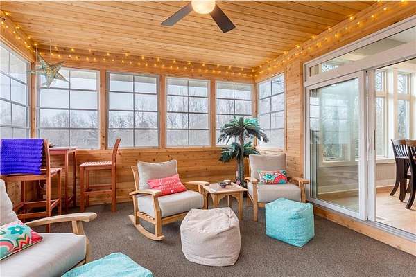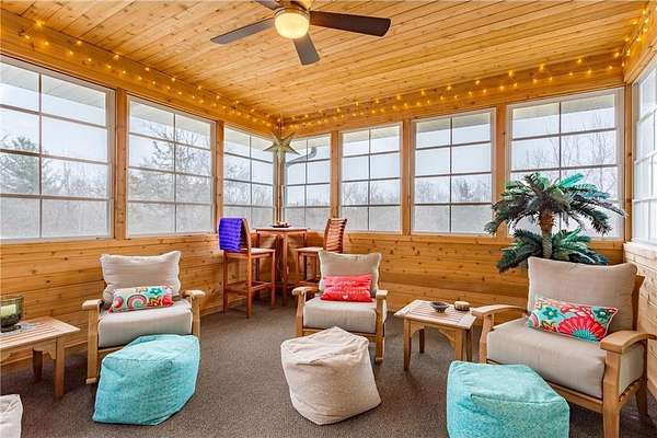 Enjoy the beauty of the property year-round from the inviting three-season porch, or step outside to the expansive patio, ideal for entertaining while overlooking the peaceful acreage.