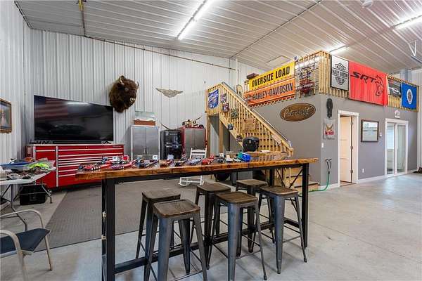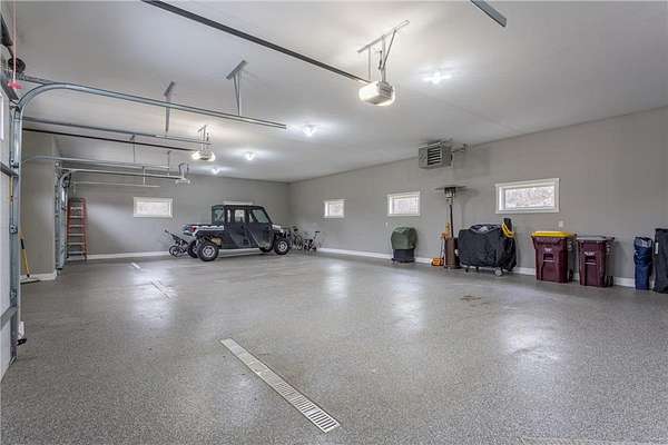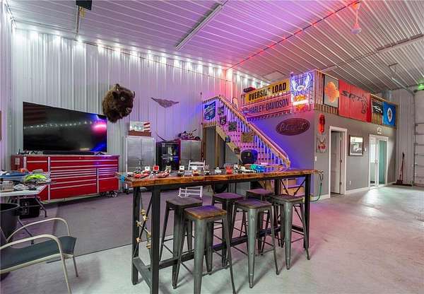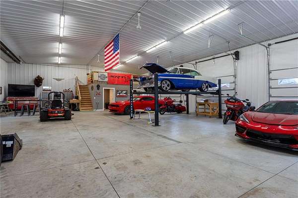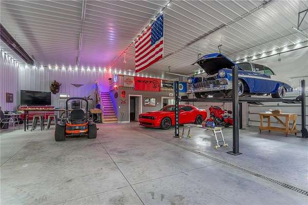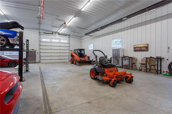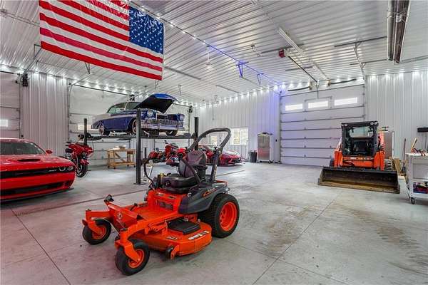 For those seeking unmatched workspace and recreation potential, the property delivers in spectacular fashion. The fully finished and heated 47’ x 32’ attached garage offers exceptional space, while the impressive 64’ x 45’ finished and heated pole building elevates the property to a new level. Featuring four overhead doors—including a 14-foot door, this remarkable building includes an 18’ x 13’ office, loft storage, ½ bath, and fully customizable party lighting, making it ideal for entertaining, business use, or showcasing a collection. A whole-property Sonos sound system connects the home, garage, and porch creating a seamless audio experience throughout.