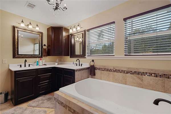 The primary suite is a true getaway with its large walk-in closet, spa-like bath featuring a jetted tub and tile shower, plus garden doors that open right onto the covered deck where you can relax and enjoy the peaceful setting.