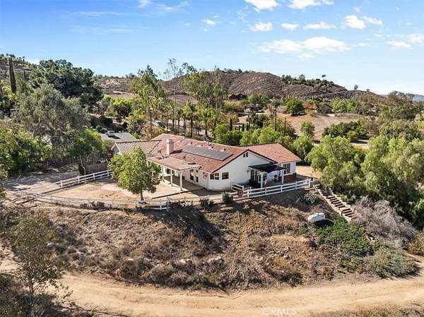 Don't miss this rare opportunity to own a stunning single-story Spanish Ranch-style home with breathtaking views of Lake Mathews and the surrounding hills! Situated on 2.45 acres, this property offers endless possibilities--build your dream horse facilities, an RV garage, workshop, or even an ADU.