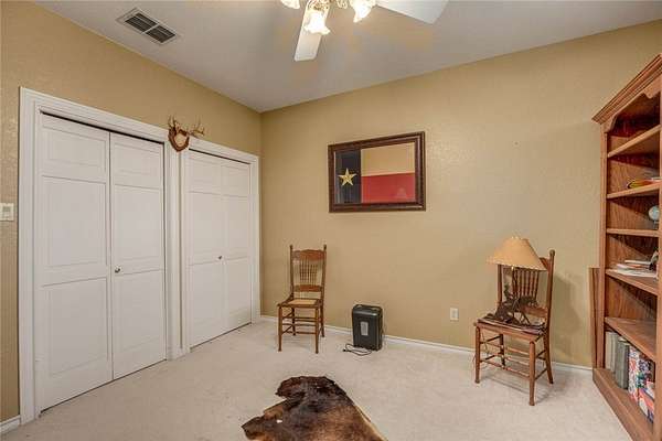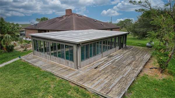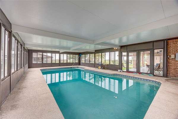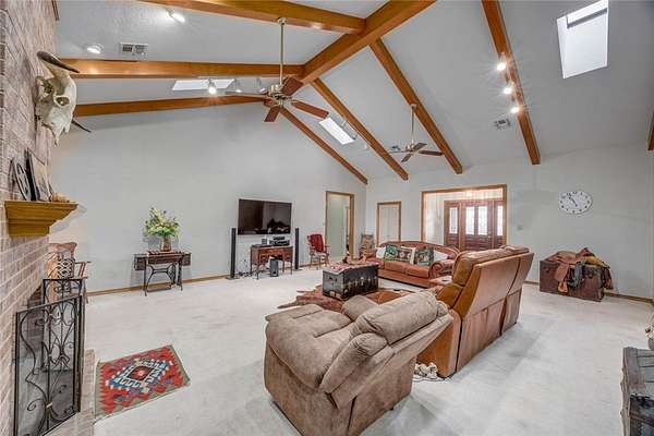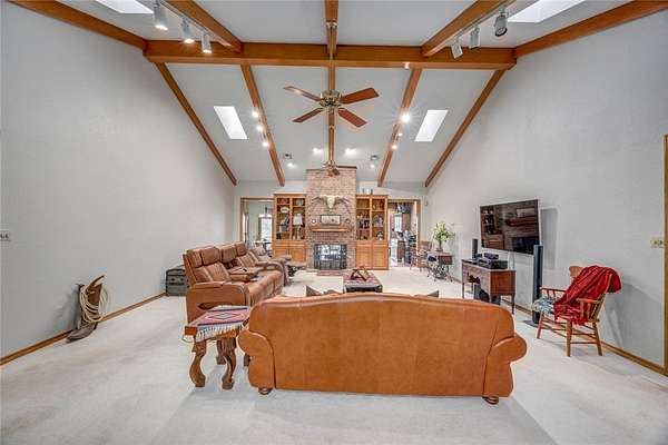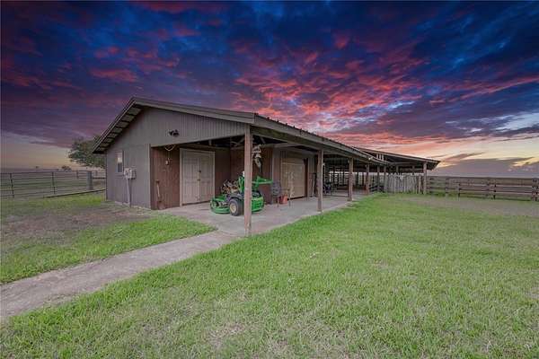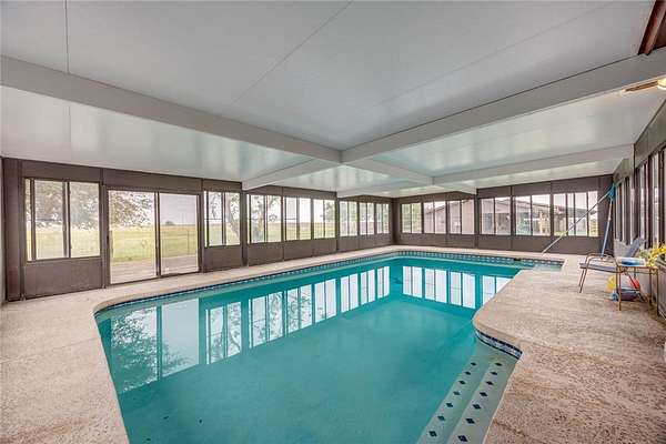 Welcome to your own private retreat on 8.5 serene acres! This custom-built home offers over 3,000 square feet of living space, featuring 4 spacious bedrooms, 3 full bathrooms, and a thoughtful split-bedroom layout. Step inside to a bright and inviting entryway, where natural light pours through 4 skylights in the living room and additional skylights in all bathrooms and the dining room - which also boasts a stunning custom wood ceiling. The living and dining areas share a charming double-sided fireplace, creating the perfect space for cozy gatherings. The primary suite is a true sanctuary, complete with an oversized layout, two massive walk-in closets, a unique U-shaped bathroom with dual vanities, and private access to a peaceful garden area. A hurricane storm curtain adds extra protection to the glass door, and hurricane-proof windows offer peace of mind throughout. Enjoy custom oak cabinetry and trim, a dedicated exercise room (or third-car garage), and a 750' blacktop driveway offering exceptional privacy. Outside, relax in the covered swimming pool with propane heaters, or head to the barn with power, water, tack and storage rooms. The property includes two new AC units (2024), two electric water heaters, a water softener, Violet city water, and two septic tanks cleaned in Feb. 2025. A new survey was just completed in June 2025 - this exceptional estate is ready for its next chapter.