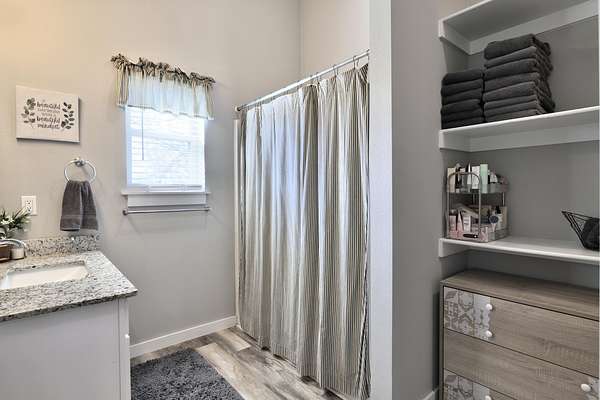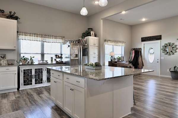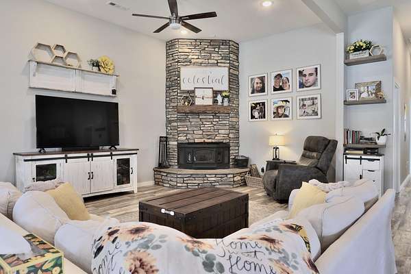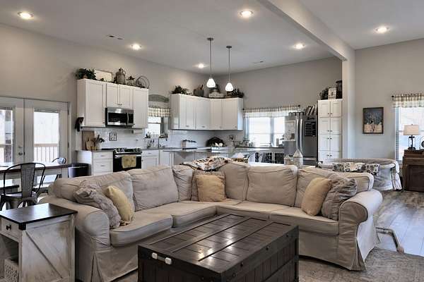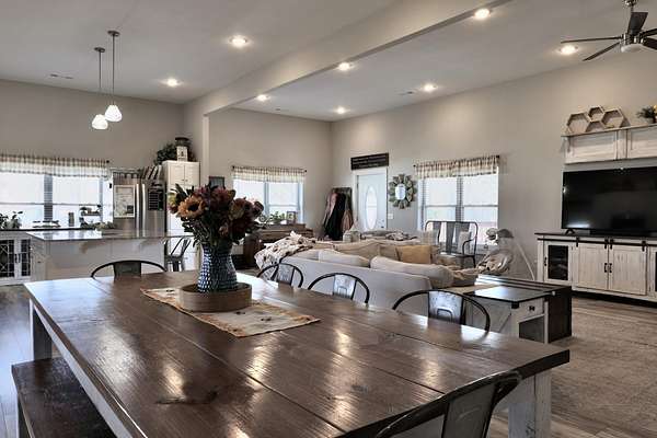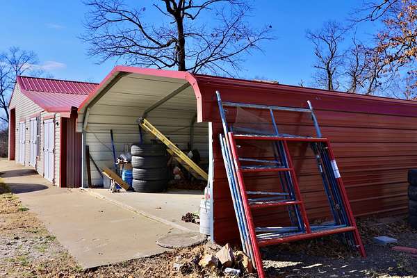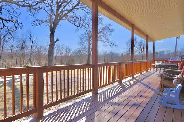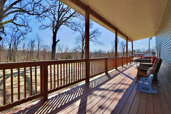 Stunning open-concept home on 4 acres, just 5 minutes from Jane Walmart.This beautiful property features expansive covered front and back porches--perfect for relaxing and enjoying the outdoors. Step inside to be impressed by 12-foot ceilings throughout and a massive open floor plan offering 3 bedrooms and 2 bathrooms.The spacious primary suite includes a gorgeous en-suite bath and private access to the back covered porch. Outdoor storage and functionality abound with multiple outbuildings, including a one-car garage on one side, a two-car carport on the other, and a pole barn ideal for farm animals or additional storage.A must-see property with space, comfort, and convenience all in one.