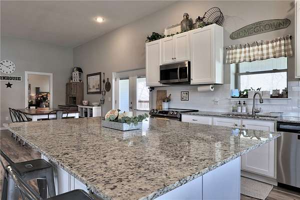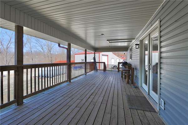 Stunning open-concept home on 4 acres, just 5 minutes from Jane Walmart. This beautiful property features expansive covered front and back porches--perfect for relaxing and enjoying the outdoors. Step inside to be impressed by 12-foot ceilings throughout and a massive open floor plan offering 3 bedrooms and 2 bathrooms. The spacious primary suite includes a gorgeous en-suite bath and private access to the back covered porch. Outdoor storage and functionality abound with multiple outbuildings, including a one-car garage on one side, a two-car carport on the other, and a pole barn ideal for farm animals or additional storage. A must-see property with space, comfort, and convenience all in one.