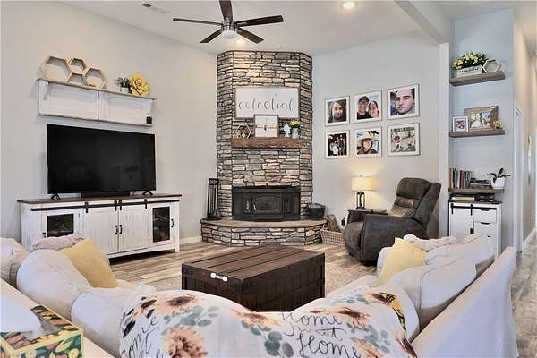 - Attic, Cathedral Ceilings, Ceiling Fans, Eat In Kitchen, Granite Counters, Walk In Closets, Wood Burning Stove