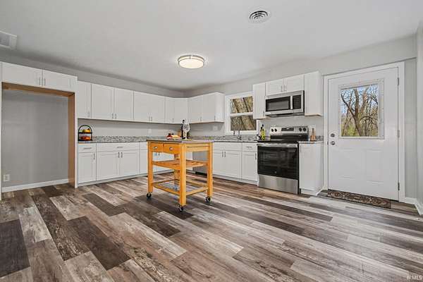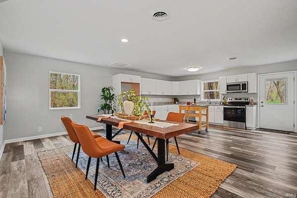 Nestled on 2.4 wooded acres in a serene, private setting, this fully renovated 3-bedroom, 2-bath home offers a great combination of seclusion and modern updates—a true nature’s paradise. Inside, soaring ceilings and an open-concept layout create a bright and comfortable living space. The updated kitchen features soft-close cabinetry, granite countertops, and opens to the dining and living areas, where large windows bring in natural light and amazing views. The primary suite features large windows overlooking the picturesque backyard along with an ensuite bath with tile floors and a double vanity. Recent updates include a new furnace, central air, and water heater. Outside, the property includes a 2-car detached garage and a 30x42 pole building with electric—perfect for storage, hobbies, or a workshop. Enjoy a peaceful, private setting with plenty of space to relax and unwind. Schedule your showing today and come experience everything this property has to offer!