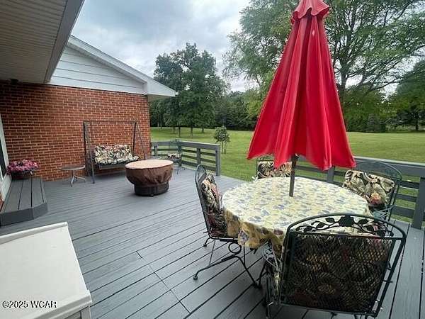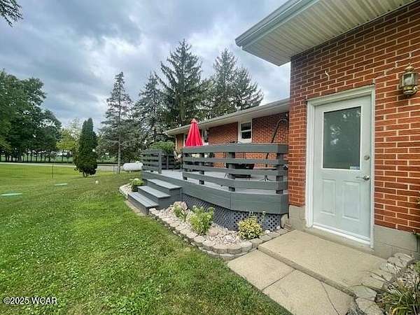 BACK ON THE MARKET through no fault of seller--this immaculate, well maintained 1,288 sq ft all brick ranch home sits on 8 acres, including approx. 1.5 acres of woods, located in the Wapakoneta SD. The home has numerous renovations throughout & offers a living room w/ wb fireplace, very nice kitchen, dining room, 3 generous bedrooms, & 1 full bathroom on the main floor. 2 flex rooms, large family room, kitchenette, dining, & full bath in lower level. You will find large closets & plenty of storage throughout. A sizeable deck at the back of the home allows for enjoying wildlife on a nice Summer or Fall evening. Note renovations include a new septic system installed in 2024. There is a 2-car att. built-in garage, a 30x30 (2 car) detached garage, & a 150 ft barn (exterior recently painted). Walking about the property, one almost feels a park-like setting. (All Square Footage as per Auditor's site).