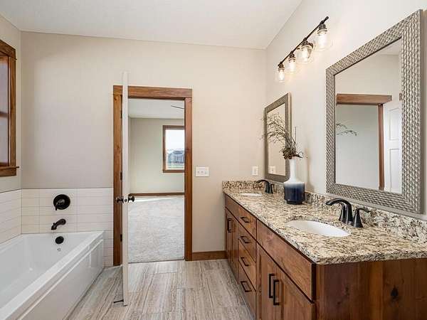 Est $3,268/moBeautiful new walkout rambler. Spacious open floor plan with wonderful layout and oversized windows throughout, gourmet kitchen with huge granite center island. Master suite complete with dual sinks, 6' soaker tub and a large walk in tile shower. Huge walkout lower level ready to finish. Many upgrades in this home!! Oversized 4 car garage. Builder can finish lower level. Wonderful acreage neighborhood. Home is "To be built" Pictures are of duplicate model in different location. All colors inside and out can be changed and home can be customized. Only 3 lots left in this neighborhood.