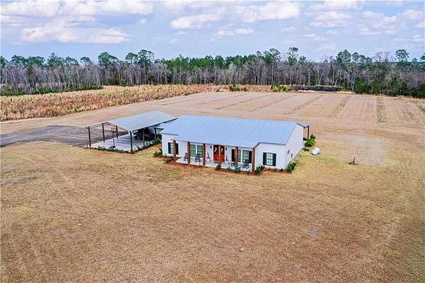 Welcome to your private country retreat. This stunning 52.54+- acre property truly has it all--custom home, crop improvements, recreation, and room to grow. The beautifully crafted 3 bedroom, 2.5 bath home was built with attention to detail. From the metal board and batten exterior with wood and brick paver accents to the thoughtfully designed interior finishes, quality shines throughout. Inside you'll find quartz countertops, stylish fixtures, and an open, inviting layout perfect for everyday living and entertaining. Built with 6" spray foam insulation, the home offers outstanding energy efficiency year-round. The master ensuite is a true retreat, complete with a bonus flex room ideal for a home office, nursery, workout space, or private sitting area. Step outside to an oversized covered back porch--perfect for entertaining guests or enjoying quiet evenings overlooking the property. The large fire pit area creates the perfect gathering space. A 3-car carport provides ample covered parking and includes a two-story attached storage room. The land itself is a dream for outdoor enthusiasts: 8+- acres in established pecan orchard with approximately 206 Excel variety pecan trees, 25+- acres of 2-year-old planted longleaf pine, 5+- acres of hardwoods, Fully stocked pond, Abundant wildlife throughout, Target shooting berm positioned at the rear of the property. As a bonus to the main home, the property features a separate 766+- sq ft heated living quarters--perfect as a mother-in-law suite or guest house. It includes its own kitchen and full bath and is attached to a 32x64 workshop equipped with three metal roll-up doors, concrete slab flooring, LED lighting and serviced by separate well and septic system. Whether you're looking for a private homestead, recreational retreat, or multi-generational living setup, this one-of-a-kind property delivers. So much care and love have gone into making this property truly special. Opportunities like this don't come along often--call today to schedule your private showing.
