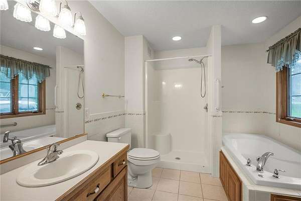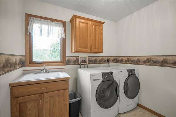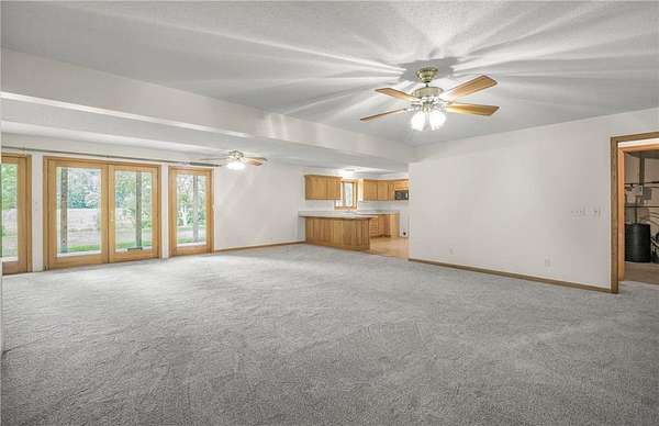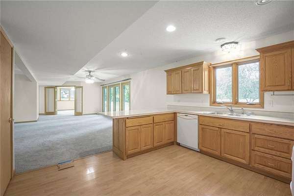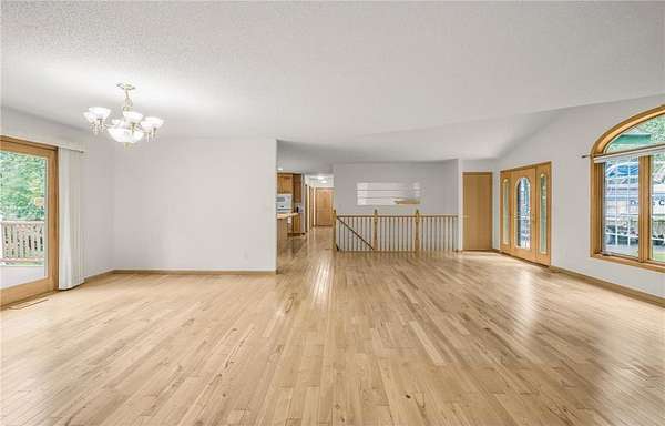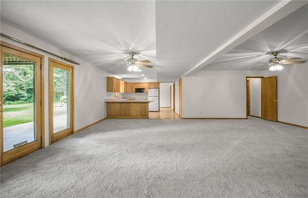 Welcome to this beautifully designed 5-bedroom, 4.5-bathroom walkout rambler nestled on 2.5 serene acres. This rare gem offers the ideal layout for multigenerational living, with two separate entrances, two full kitchens, and ample space for privacy and comfort. The main level features a spacious open-concept kitchen, dining, and living area with large windows that flood the space with natural light. The primary suite includes a private ensuite and walk-in closet, complemented by two additional bedrooms and 3 baths on the main floor. The fully finished walkout lower level functions as its own independent living space, complete with a second full kitchen, two more bedrooms, and one full bathroom with dual sinks--perfect for extended family, guests, or rental opportunities.