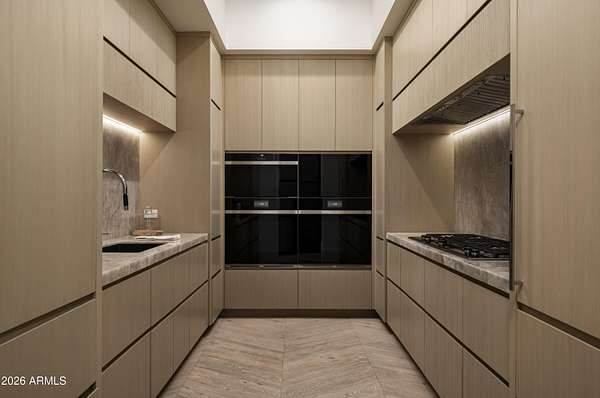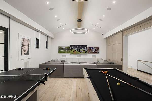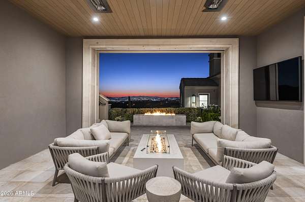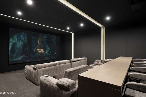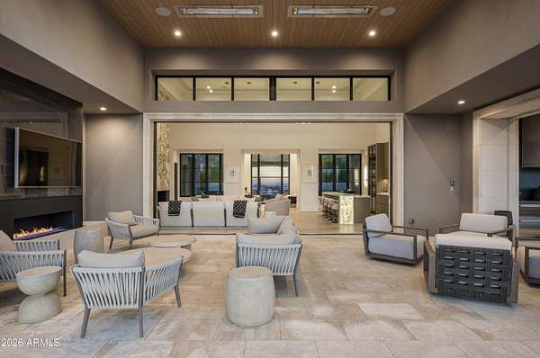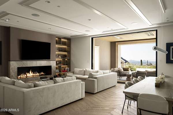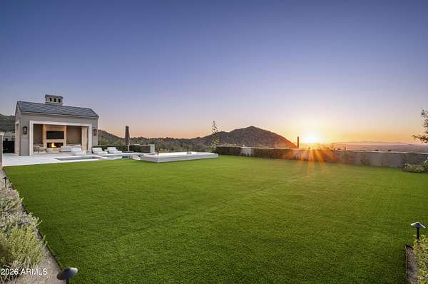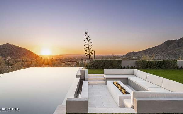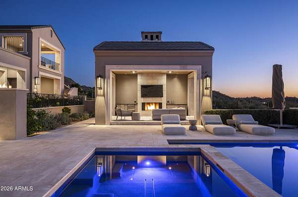 Privately gated within Silverleaf's prestigious Upper Canyon, this impeccably crafted custom estate-designed in collaboration with PHX Architecture, Sommer Custom Homes, and Ownby Design-sits on nearly 4.5 acres and offers a rare balance of grand scale, privacy, and effortless livability. The residence is defined by soaring ceilings, light wood flooring, and a striking book-matched marble fireplace, complemented by sweeping city-light views, vibrant sunsets, mountain views, and an expansive turf yard-hard to find on hillside estates in this exclusive enclave. Designed for seamless indoor-outdoor living, the open-concept kitchen, dining, and living spaces flow effortlessly to the outdoors. The chef's kitchen is anchored by a full back kitchen and multiple ovens, perfectly suited for both elevated entertaining and everyday living. Oversized glass sliders in the great room and family room open to covered patios outfitted with sunshades, misters, heaters, and a built-in BBQcreating an ideal setting for year-round gatherings and alfresco dining. The entry-level primary retreat is a true sanctuary, featuring a dedicated exercise room and private office. As you enter the bedroom, your eye is immediately drawn to the private patio and endless views beyond. The retreat is completed by two custom walk-in closets and a spa-inspired bath with sauna, steam shower, outdoor shower, cold plunge, and a secluded patio designed for ultimate relaxation. Five spacious guest en-suite bedrooms, each with walk-in closets, provide exceptional comfort for family and guests. Additional living spaces include a private theater, a dedicated kids' recreation room, and a private family room, offering versatility and space for every lifestyle. The resort-style backyard is highlighted by a negative edge pool and spa, along with a covered cabana featuring a pool house bath. A six-car garage accommodates an extensive vehicle collection. Ideally located just moments from Scottsdale's premier dining, shopping, and resort destinations, this exceptional estate delivers refined luxury in one of Arizona's most coveted communities.