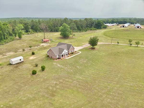 This beautiful brick and vinyl home sits on an impressive 36.42 acres with extensive paved road frontage, offering both privacy and convenience. Built in 2000 and thoughtfully updated, this 3-bedroom, 2.5-bath home features approximately 1,941 square feet of comfortable living space. Step inside from the covered front porch to a welcoming foyer and separate formal dining area to find a spacious living area and layout with tray ceilings and a cozy gas fireplace open to the kitchen and small breakfast area. The split-bedroom floor plan provides added privacy, while the large master suite offers a true retreat with an oversized bathroom, complete with a garden tub, separate shower, double vanities, and a huge walk-in closet. The kitchen was fully updated in 2022 and boasts granite countertops, new appliances, and modern finishes that make it both stylish and functional. Fresh paint throughout and new laminate flooring in two bedrooms. Outside, you’ll find a covered screened porch and a two-car garage with vinyl siding for easy maintenance and washing, a concrete driveway, and a 12x24 metal storage building for extra space. With plenty of paved road frontage and room to spread out. This property offers the perfect blend of country living and everyday convenience. There is an additional septic tank and water access for RV hookup, a Mother-in-law suite or a mobile home. This property was an operating Poultry Farm until January 2026, with 4- 40x400 houses and 2- 50x500 houses. All buildings are equipped with water and electricity. Additional possibilities include livestock, quail farm or auto storage. This property and home have been well maintained and ready for you to make it your own.From 4 way stop in Hartford take Hwy 167 South to County Road 61, take a right, go to County Road 6 take a right, house will be a short distance on the right.Call Carmen Beasley 334-796-8369 for appointment and information.