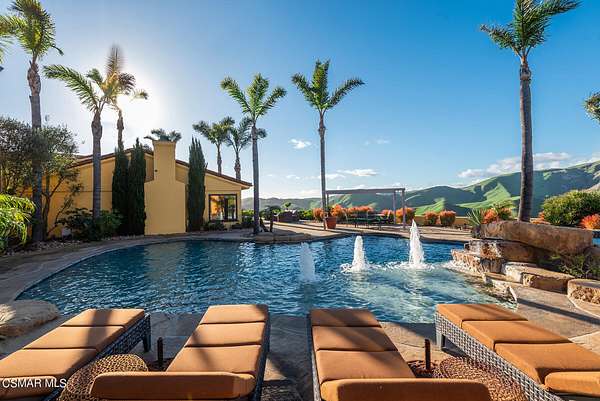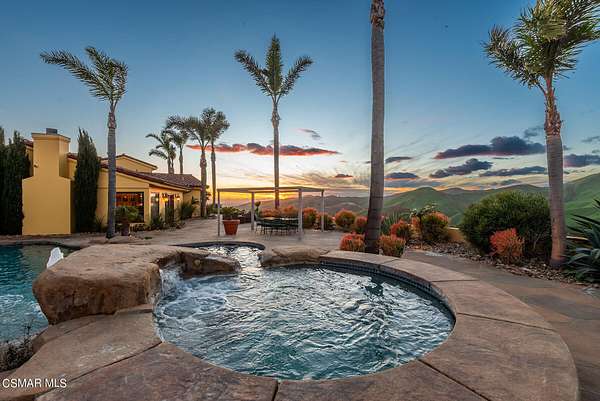 An absolutely awe inspiring masterpiece estate sitting atop over 46 private acres in the highly desirable small gated community of La Loma Ranch. Ideally set behind a private gate and up a long driveway sits this remarkable one of a kind Mediterranean villa boasting the most incredible 360 degree jet liner views in Ventura county. The unobstructed panoramic views of the ocean, mountains and valley below are truly second to none! The primary residence spans 5448 square feet and there is also a 1000 square foot detached guest house, ranchers quarters with kitchen and bathroom, barn and garages for approximately 26 cars. The primary home is graced with an impressive two story entry with curved wrought iron staircase. There is also a theater, office, beautiful center island kitchen and a tremendous primary suite with two balconies, vaulted ceilings, hardwood floors, fireplace and a spa like bathroom with jetted tub, steam shower and fireplace. There are also 3 additional bedrooms in the main home. The detached guest house has one bedroom, living room, kitchen, fireplace, eating area and beautiful bathroom. The resort quality yard provides a pebble tech pool and spa with water features, lush mature landscape and explosive views from everywhere! This true compound villa is a one of one! There is a new approximately 1/2 acre graded pad plus prime lower level grounds ideal for tennis court or go kart tracks, epic massive garages including one with a second story expansive office space and so much more! This is absolutely the premier view ranch estate in highly desirable Somis! A very special offering!