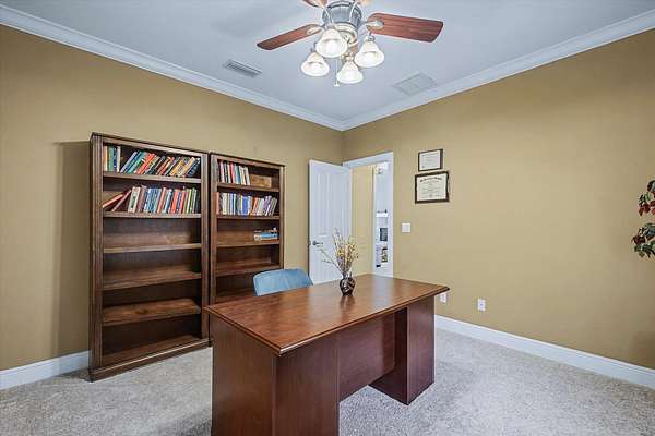 Welcome to your private retreat in the heart of Tallahassee's coveted Ox Bottom area. Set on 2+ beautifully landscaped acres, this custom-built home offers a rare blend of space, privacy, and everyday convenience. A long, inviting drive leads to an expansive front yard and three-car garage, creating an immediate sense of arrival and an estate-like presence. No HOA, with plenty of room in the back for a pool, pole barn or Mother-in-Law Suite. Inside, soaring 14-foot ceilings, an open-concept design, and abundant natural light create an atmosphere that is both elegant and welcoming. The thoughtfully designed layout features four bedrooms, a dedicated office, and four baths, offering flexibility for today's lifestyles. Recent updates include new carpet, new appliances, and freshly painted bathrooms. The HVAC system is approximately three years old, and the roof is approximately six years old. At the heart of the home, the chef's kitchen is truly a showstopper-perfect for entertaining or casual gatherings. Appointed with custom cherry cabinetry, granite countertops, stainless double ovens, a wine cooler, and a butler's pantry, it flows seamlessly into multiple living and dining spaces, making hosting effortless and everyday living a joy. With its warm, welcoming design this home is perfectly suited for its next owners to settle in and make lasting memories for years ahead.