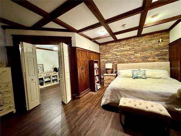 - Coffered Ceiling(s), Crown Molding, Primary Bedroom Upstairs, Solid Surface Counters, Solid Wood Cabinets, Stone Counters