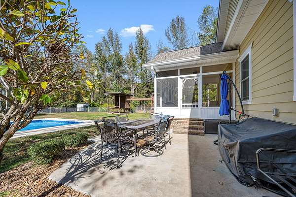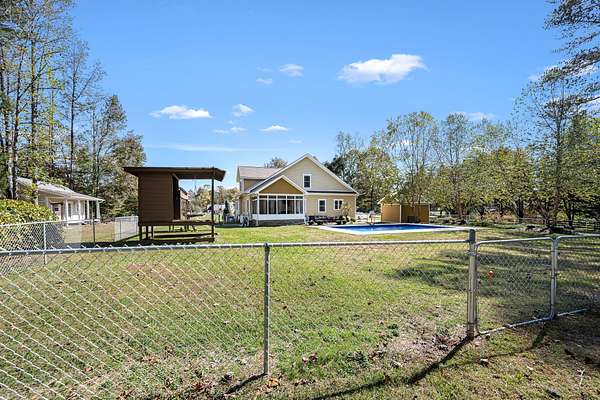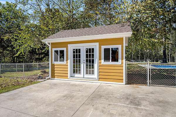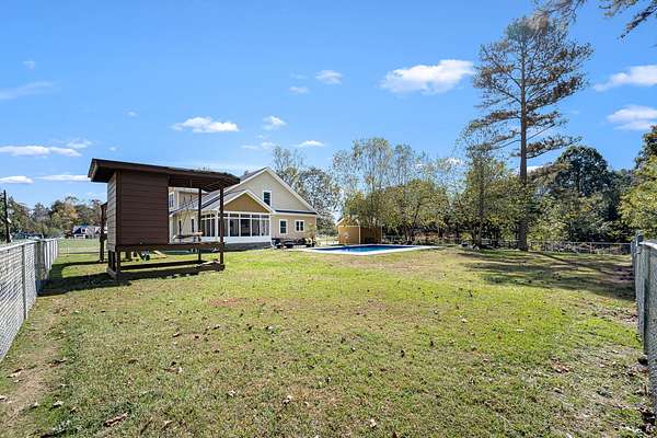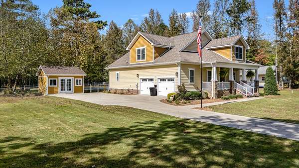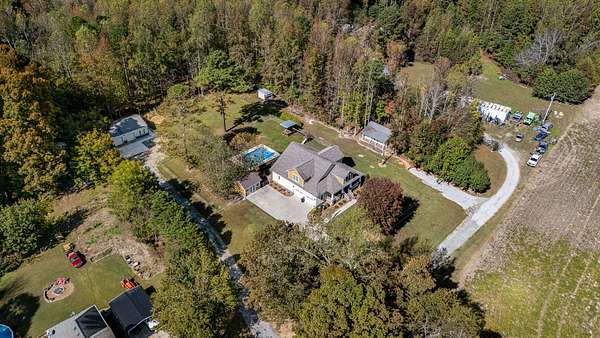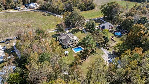Experience the best of mini-farm living with this beautiful property situated on approximately 6.2 unrestricted acres of land with no city taxes. Offering just under 3,000 square feet of finished living space, this home combines modern comfort with timeless charm. Inside, you’ll find 5” handscraped walnut floors, a spacious great room with soaring ceiling, a formal dining room filled with natural light, and an inviting eat-in kitchen designed for the cook at heart—complete with custom cabinetry, granite countertops, and a pantry closet. The primary suite, located on the main level, provides a private retreat with separate vanities, a jetted tub, walk-in shower, and a large walk-in closet. Upstairs, two guest bedrooms each feature walk-in closets and ceiling fans, along with a versatile office space with built-in cabinetry and a large recreation room with a gas fireplace and vaulted ceiling. Additional highlights include an oversized two-car garage with a built-in storm shelter, a 30x36 workshop with electricity & 20X30 concrete pad and walkway. Professional landscaping enhances the property’s natural beauty. Outdoor living is at its best with a screened-in porch, an inground 4.5’ deep sports pool (Sept/Oct 2024), she-shed wired for electricity, chicken coop w/separate fenced area & lien-too. children’s playset, and more. A separate guest cottage offers its own kitchen, bathroom, and sleeping area—perfect for visitors, rental potential or extended stays. This property is a rare find, offering the peace and charm of country living with the convenience of being close to town amenities.