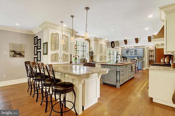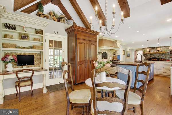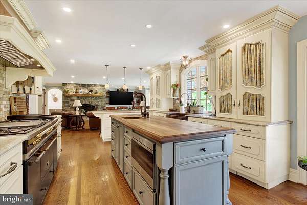 - Breakfast Area, Built-Ins, Butlers Pantry, Carpet, Ceiling Fan(s), Chair Railings, Crown Moldings, Curved Staircase, Elevator, Entry Level Bedroom, Exposed Beams, Family Room Off Kitchen, Formal/Separate Dining Room, Gourmet Kitchen, Island Kitchen, Open Floor Plan, Pantry, Primary Bath(s), Recessed Lighting, Soaking Tub Bathroom, Tub Shower Bathroom, Upgraded Countertops, Wainscotting, Walk-In Closet(s), Walk-In Shower Bathroom, Wet/Dry Bar, Wood Floors
