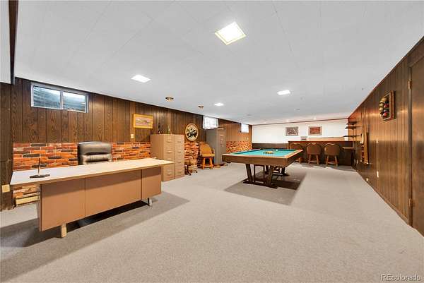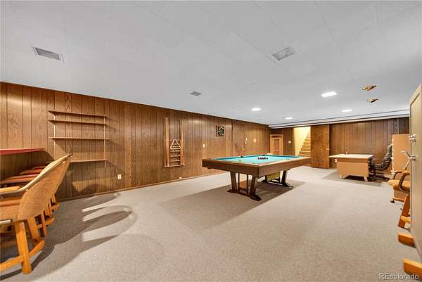The eat-in kitchen has been thoughtfully updated with maple cabinetry, stainless appliances, double oven, and ample storage. A laundry room and convenient half bath just off the garage help keep daily mess contained before entering the main living space. Downstairs features a large entertainment area complete with a bar and built-in seating, offering flexibility for entertaining or future customization. A storage and utility room provides easy access to the crawlspace and utilities, simplifying maintenance.