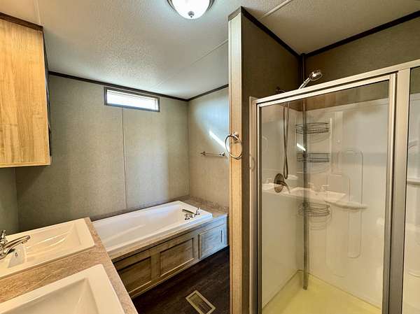 - Ceiling Fans, Garden Tub Roman Tub, Kitchen Dining Combo, Laminate Counters, Main Level Primary, Pantry, Walk In Closets, Walk In Shower, Window Treatments