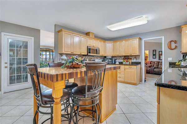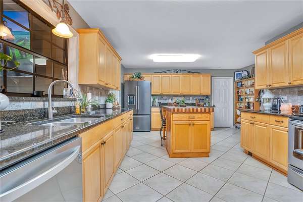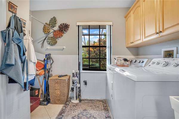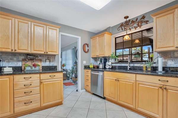 The home has been well maintained. The large eat in kitchen, dining room and great room have high ceilings and amazing lake views. Kitchen has granite countertops with travertine backsplash. This home offers great outdoor living as well, custom built saltwater pool with waterfall, completely functioning outdoor kitchen and a hot tub that sits amongst a tropical setting, while all being enclosed in a screened in Lani.