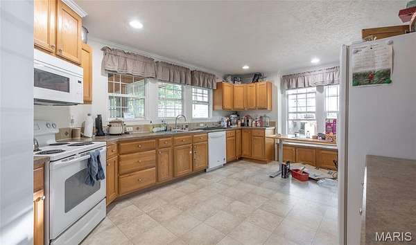CHECK OUT this 3-bed 2-bath, manufactured home!! Not only is this a beautiful home, but it also comes with approximately 2.6 acres, a private, fenced-in backyard, an enclosed back porch/sunroom, a detached garage, and a 570 sq. ft. guest house, which the guest house will be sold AS IS. This property also has a pond that can be stocked, LIKE WOW! This home is located only minutes from Fort Leonard Wood, Westgate, and I-44. Call this private oasis your next home!