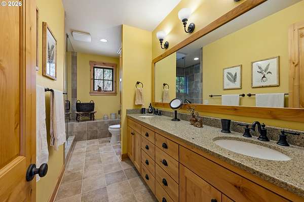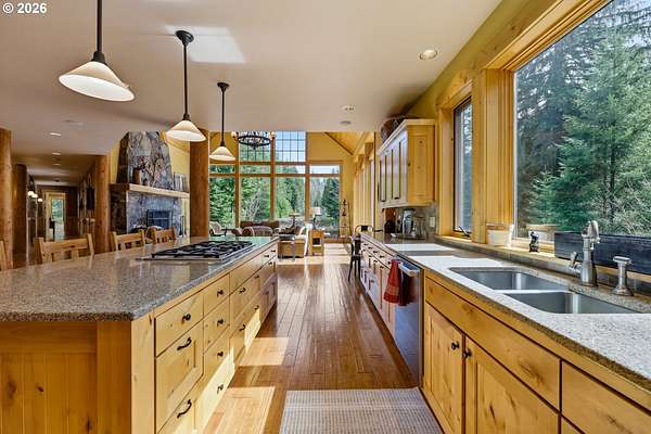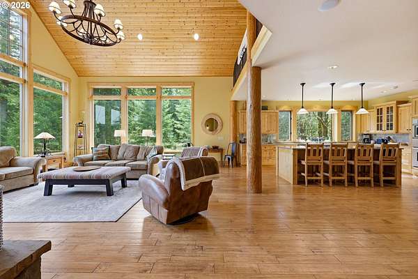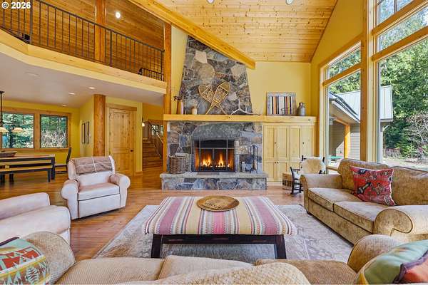Welcome to your custom built, dream home on Mt Hood -a stunning 3,582-square-foot retreat nestled at the end of a private road within the gated community of Glacier View Estates. This extraordinary 3-bedroom, 2.5-bathroom residence delivers the kind of Pacific Northwest living most only pin to their vision boards. Vaulted ceilings, exposed beams, and handsome log columns frame a breathtaking great room where a striking fireplace & hearth command attention. Real hardwood flooring stretches throughout, complemented by genuine stone work - no faux veneer in sight. This home was built with integrity, and it shows. The gourmet kitchen features a generous island, built-in refrigerator, oven, and microwave, making it the kind of space where serious meals and casual gatherings happen with equal ease. While all 3 bedrooms are generous in size, the primary suite is a sanctuary unto itself, boasting a freestanding soaking tub and a luxurious steam shower that will make every evening feel like a spa retreat. Propane quick-light fireplaces in both the living room and exterior covered deck, ensuring warmth and ambiance wherever you wander. Beyond the main level, a spacious loft and flex-space rooms await your creative vision, with joint spacing already engineered for future buildout into additional usable space. Sustainability meets sophistication here with owned solar panels, a geothermal system, a whole-home well filtration system, a backup generator, and an electric vehicle charger in the garage. The durable metal roof ties it all together with lasting peace of mind. Two wood storage sheds and a wrap-around drive add everyday practicality to this mountain paradise. Outside, a protected Mount Hood view easement safeguards your jaw-dropping vistas for years to come in addition to a trail easement leading directly to the Sandy River, connecting you to Ramona Falls and the Pacific Crest Trail. Only an hour to PDX and 20 minutes to Government Camp!