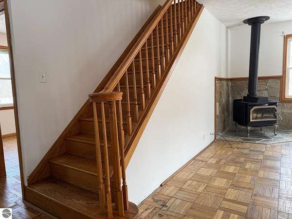 This spacious farmhouse with an appealing layout offers an open floor plan, hardwood floors, island kitchen. Traditional wood stairwell, stand-alone wood burning stove. Main floor bedroom and laundry. Screened in porch off the living area adds to the charm of this home. Beyond the home layout being everything you need, the property is vast and beautiful. A charming large barn towers on the property and is multi-level. Long, rustic, barn beams are just one of the accents you will see. Also a well lit, large 50 x 60 pole barn, with roll-up back and front doors and entrance doors on each side. There is also a small chicken-coup for those farm-fresh eggs if you wish. All on 10 acres of land with zoning option of light commercial use. Many opportunities to explore!